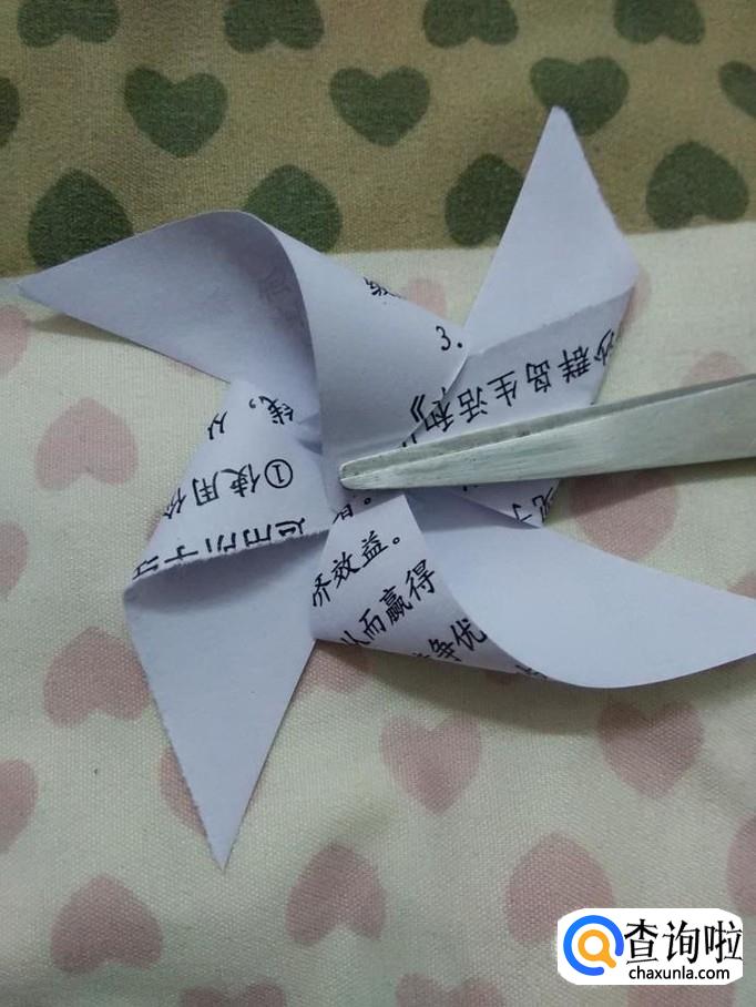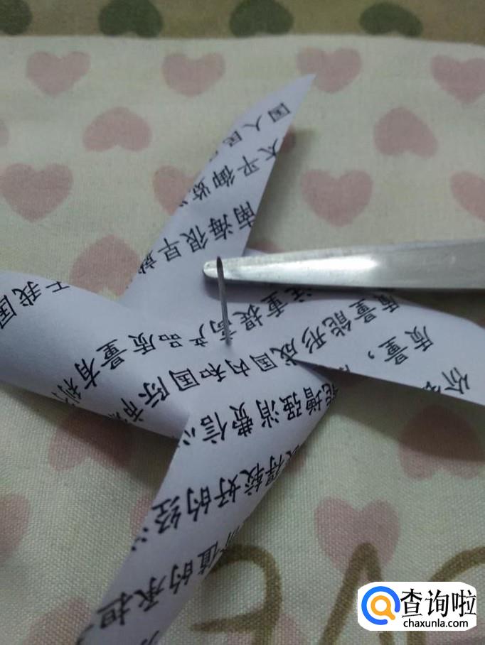 用大头针穿过中间的四个角。
