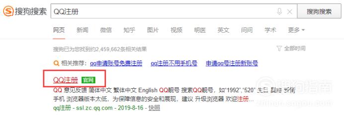 打开浏览器,搜索“QQ注册”,然后进入QQ注册官网。