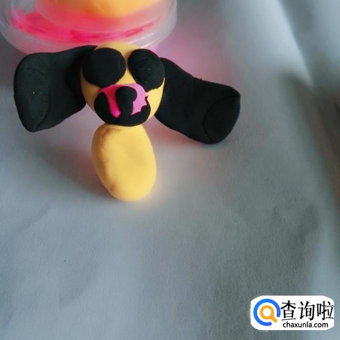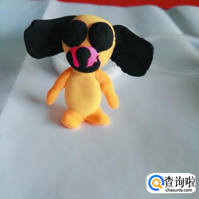 再用黄色超轻粘土做成狗狗的身子,红色的做成狗狗的嘴嘴和鼻子,这个有些没做好,下次改好一点。