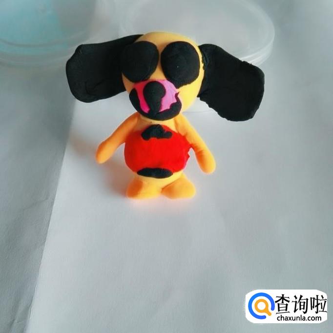 最后用红色超轻粘土做出小狗狗的衣服。到这里,这个手工就完成了,因为太赶时间,做得不够好,希望大家只看方法,别在意成品。