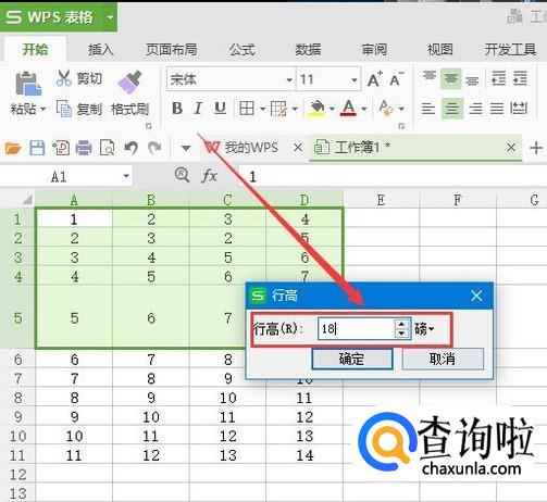 打开表格,鼠标选择需要修改行高的区域(如图)