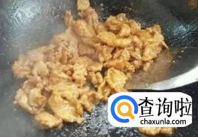 热锅起油,放猪肉进去,翻炒一下,然后加适量的生抽料酒大火翻炒至变色。