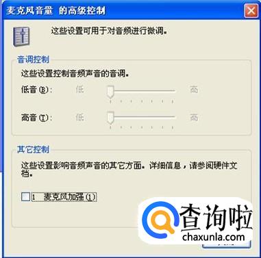 还可以捎带在上一步界面上点选“麦克风音量”下的“高级”,在“其它控制”下的“麦克风加强”的√去掉。
