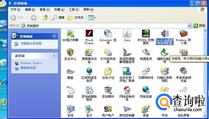再就是音频设置了。点击“开始”--“控制面板”--“realtek高清晰音频设置”。
