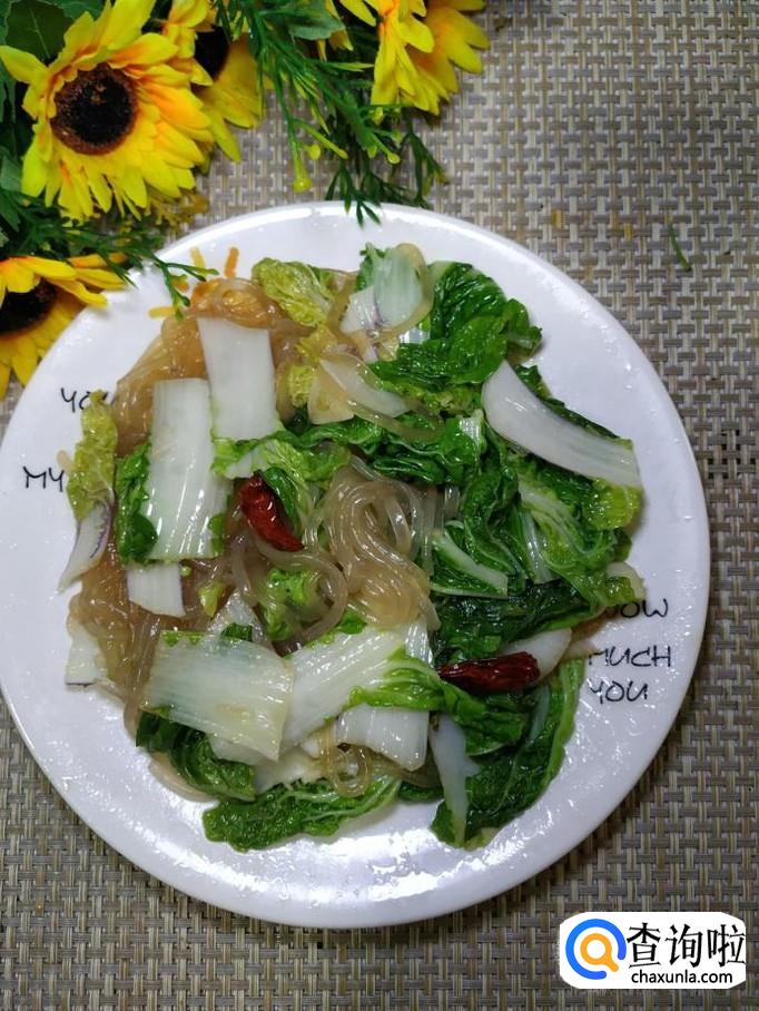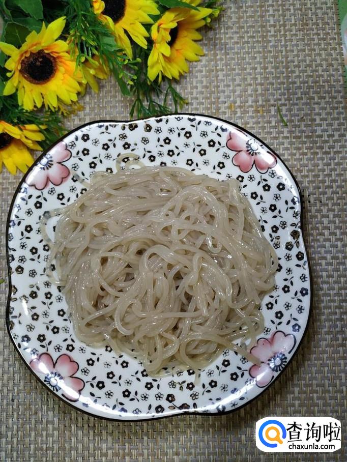 再准备适量粉条,用清水泡开,放入盘中备用。