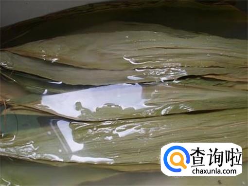 将粽叶重叠,侧身放在水盆里,室温水泡15-25分钟,最后用干净的抹布将正反面清洗干净