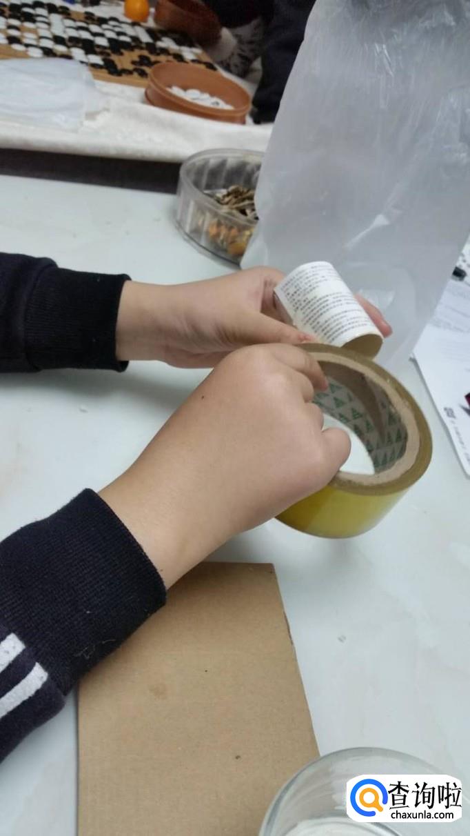 拿一张硬纸片卷成圆筒然后用透明胶带把圆筒粘好。
