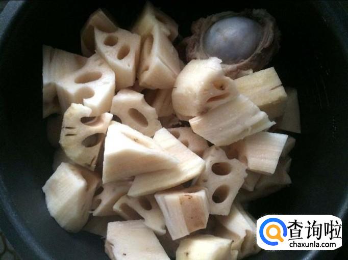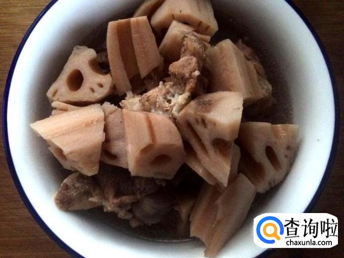 将棒骨、莲藕和汤盛到汤碗里,上桌即可。