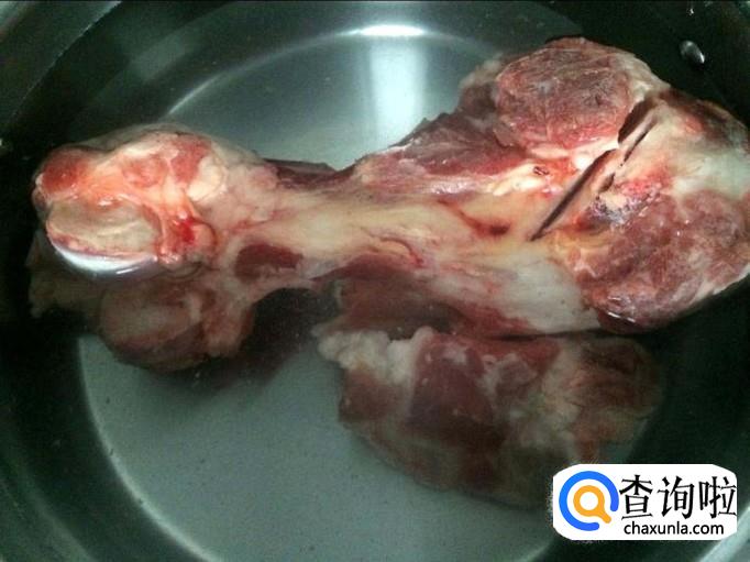 棒骨清水洗净,入沸水焯出血水后,捞出洗净浮沫备用。