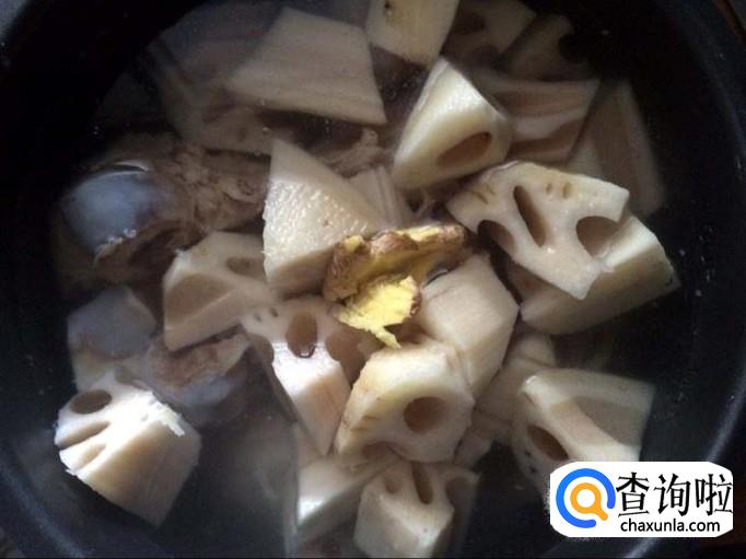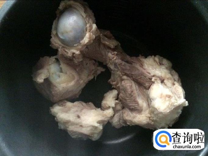 再加入姜块和适量清水,大火煮沸后,小火炖煮至棒骨肉软烂。