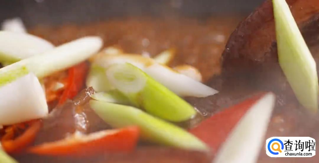 2、湘菜无辣不欢,出锅时候要放红辣椒和蒜苗。