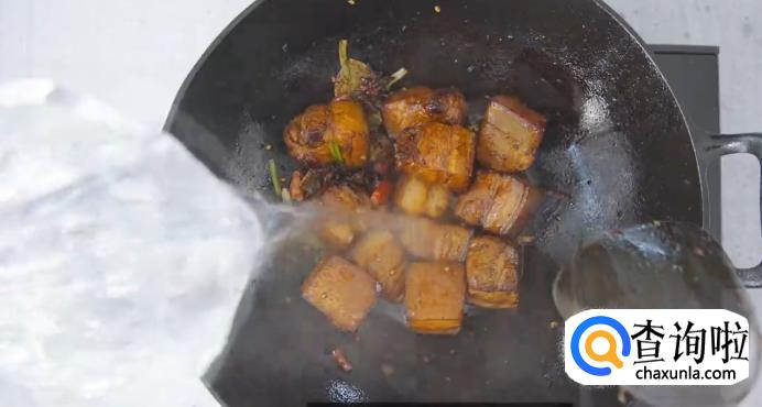 倒入适量的开水,至没过五花肉。