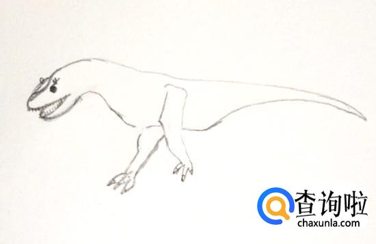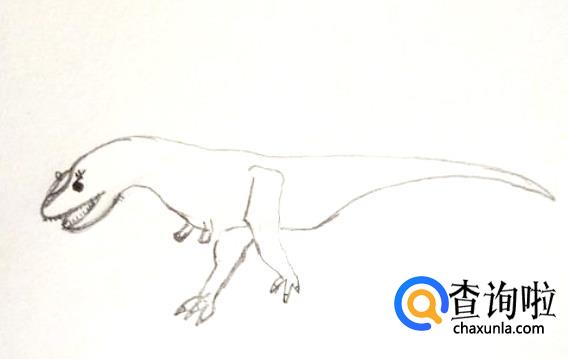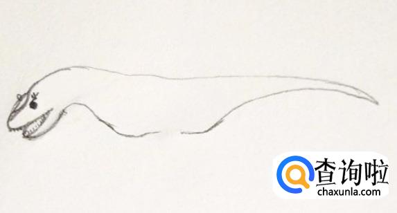 首先画出食肉牛龙的身体上部轮廓,画出高低起伏的线。之后再画出其头部,大大的嘴巴很可怕。