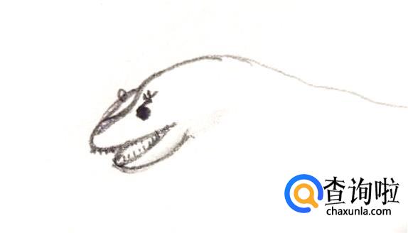 然后画上牙齿,接着再画出它圆圆的眼睛,灵性的。