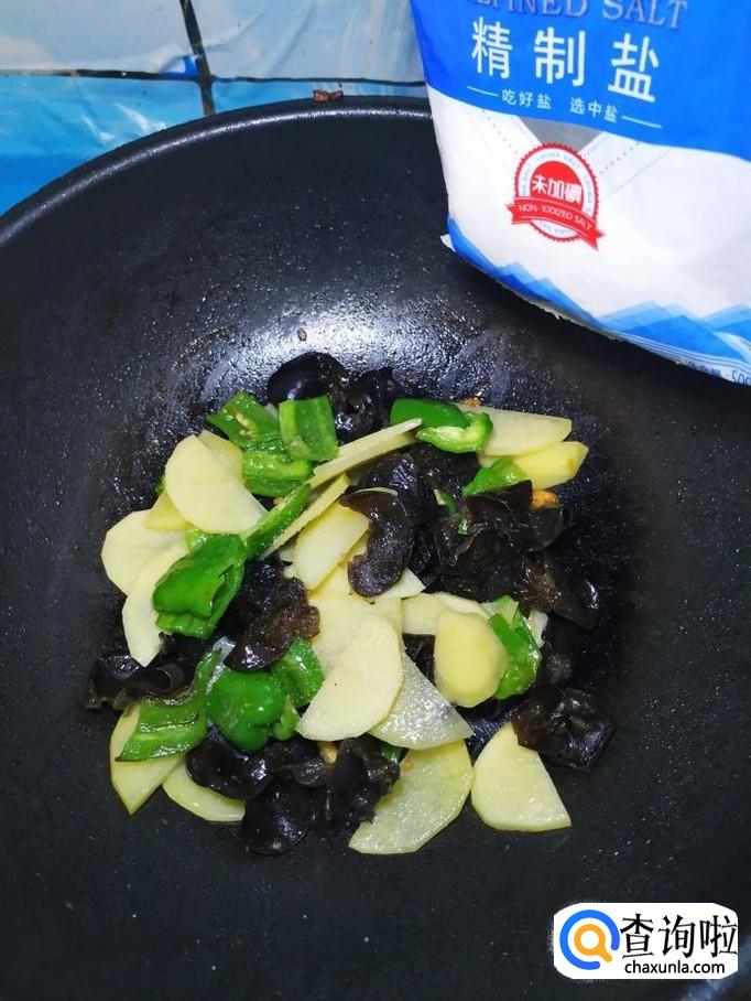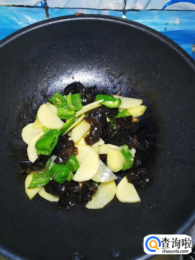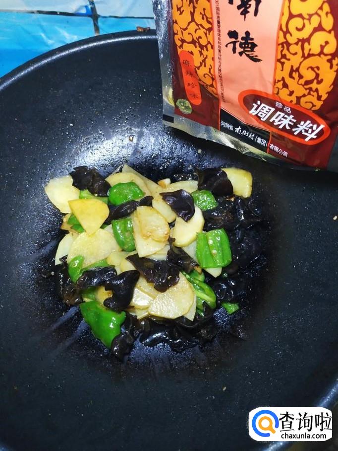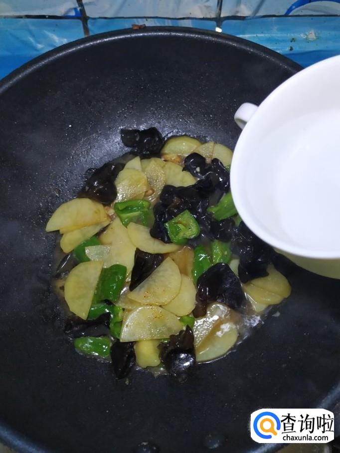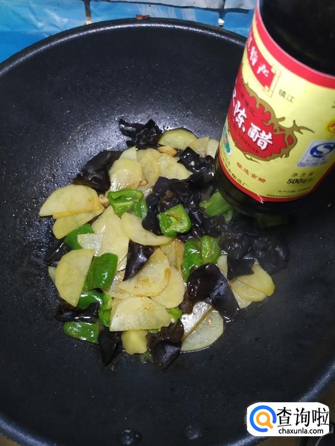 加少许清水,防止粘锅,盖上锅盖,再炒两三分钟,将土豆片彻底炒熟,出锅前加少许陈醋提鲜。