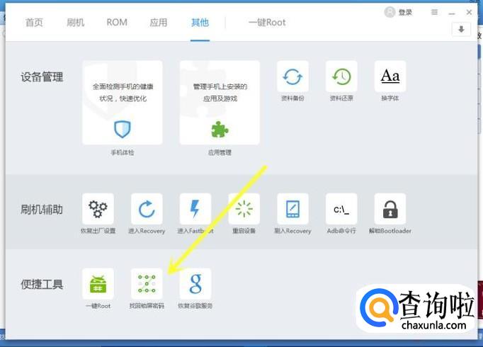 在其他面板的底部有 找回锁屏密码 的选项,我们点击即可找回手机锁屏密码。