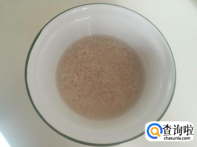 把糯米清洗干净,放入一个小盆里,加水泡上4个小时。