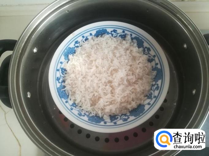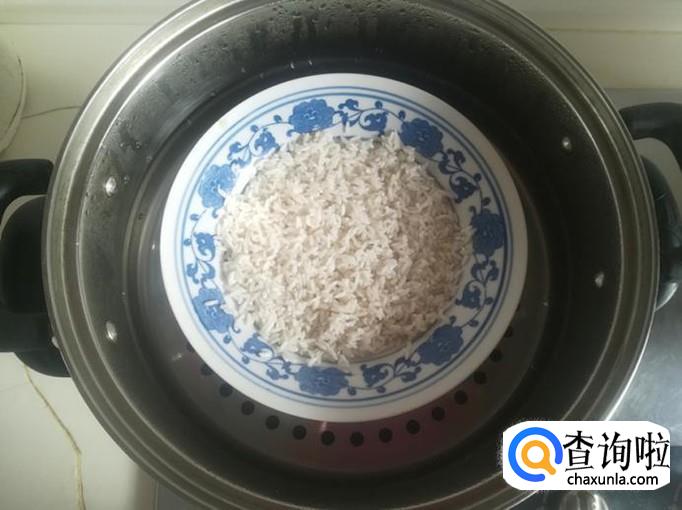 取一个蒸锅,加入半锅清水,放上笼屉,把糯米盘放在笼屉上。