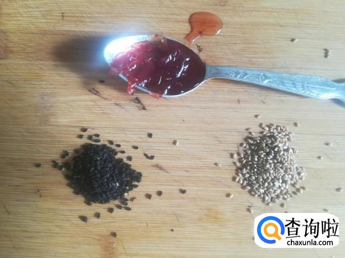 备好1勺果酱,1勺黑芝麻,1勺白芝麻。