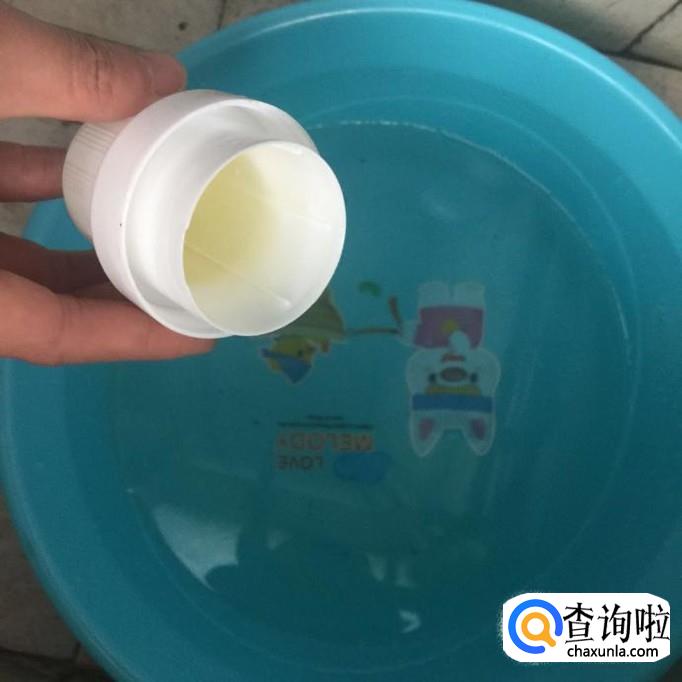 接着往盆子中加入适量的洗衣液,再把我们的丝质衣服丢进去浸泡半个小时。