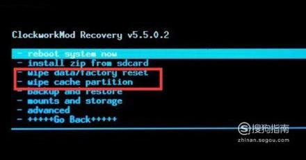 然后再点击Wipe Cache Partition确定一次,最后 选择第一项reboot system now 重启手机即可。