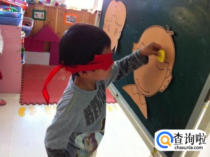 首先在黑板上画一张脸,尽量大一点,然后画上眼睛、嘴巴,鼻子的位置空着,接着用布条把参与者的眼睛蒙上,让参与者去贴鼻子。
