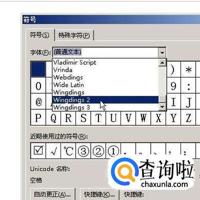 调出了符号面板,在字体这里,点击下拉按钮,弹出的列表中选择倒数第二个:wingdings 2