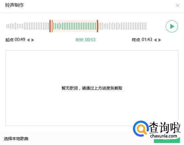点击“选择本地歌曲”,在电脑中选择想要截取的歌曲文件,或直接将本地的歌曲文件拖拽到该界面中。