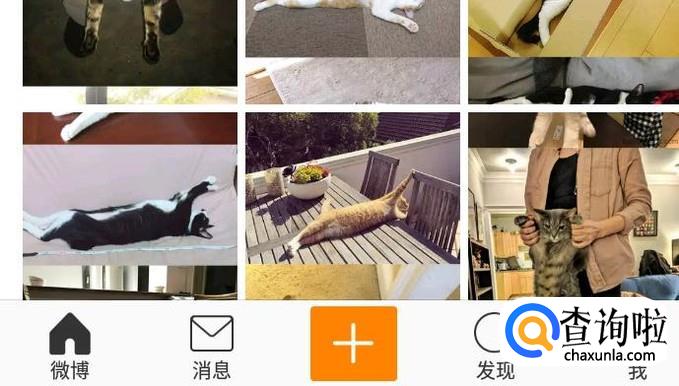 在进入微博的界面后,点击底部的“黄色加号”,如图所示: