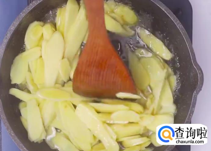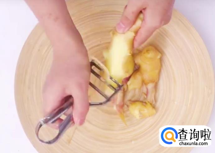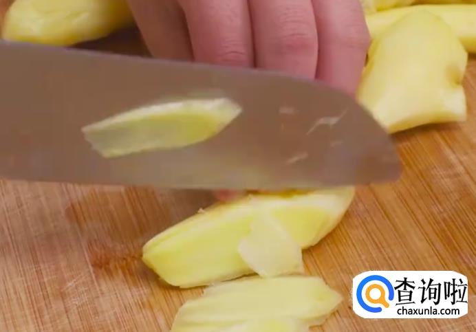 先将嫩姜去皮切片。