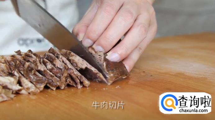 第二天将牛肉夹出来,从牛肉中间切开,再将其切成片,放在一旁待用。