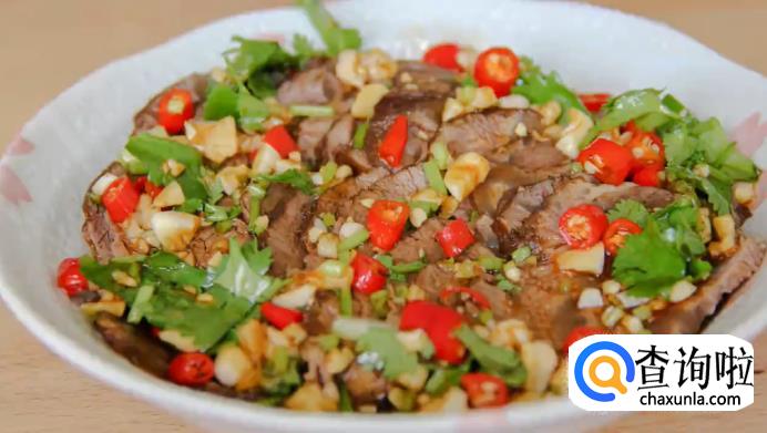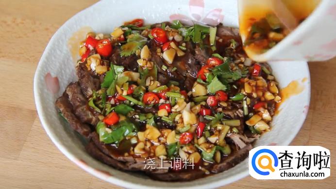 把切好的牛肉放在碗里,淋上拌好的调料,这道卤牛肉就完成了。