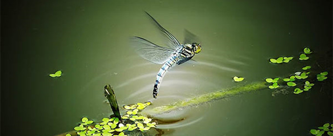 蜻蜓的幼虫需要在水里过很久的爬行生活。为了繁衍后代,雌蜻蜓用尾巴点水的方法,把受精卵排到水中,附着在水草上,以便孵出幼虫。