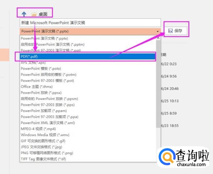 首先选择保存路径,然后选择保存文件格式为“.PDF”