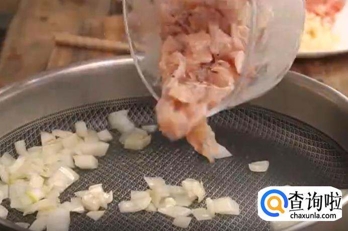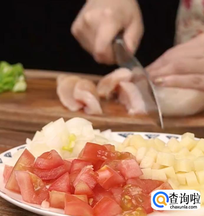 鸡胸肉切丁。