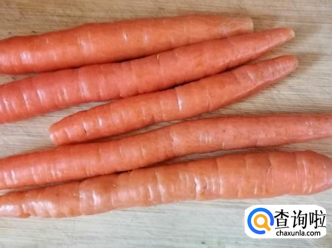 取适量胡萝卜,用清水把胡萝卜洗净,然后用刀切掉胡萝卜两头,把胡萝卜用刀切成两段,切好待用。