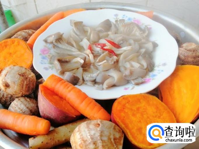 适量地瓜,适量芋头,适量山药,适量胡萝卜,适量蘑菇,干红辣椒一个