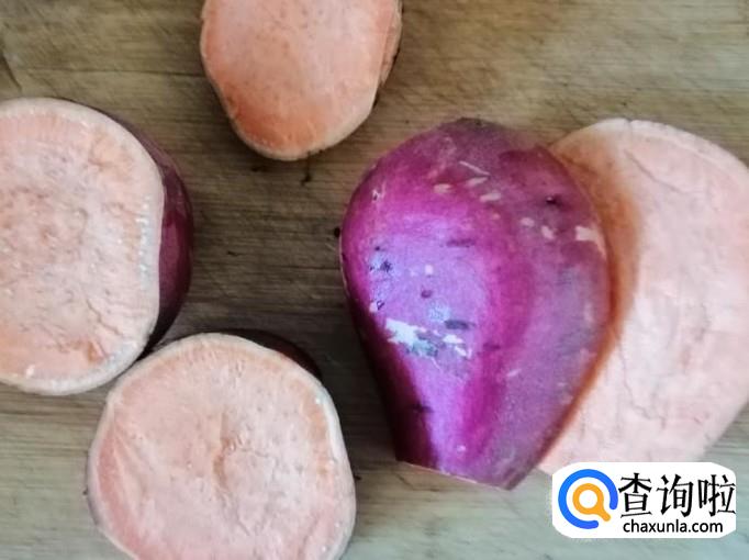 取新鲜的地瓜适量,用清水把地瓜洗净,因为地瓜外皮泥太多,应该多洗几遍,把地瓜洗净,用刀去掉头尾,切好待用。