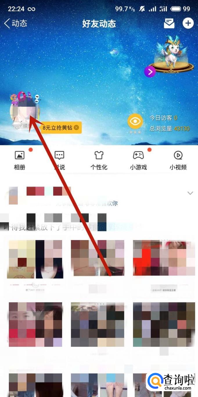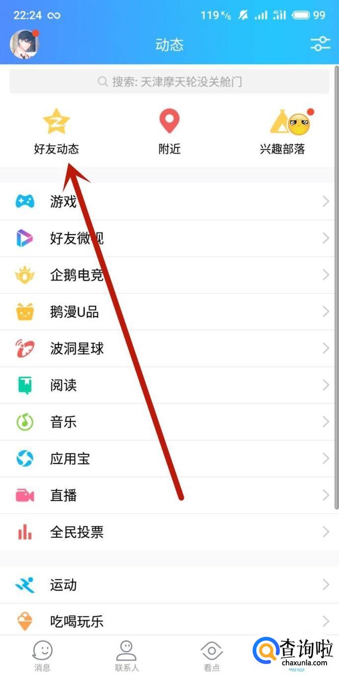 在QQ动态页面,点击“好友动态”,如图所示。