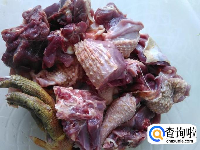 把鹅肉斩成一块块。