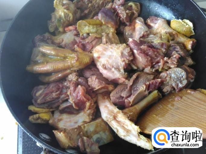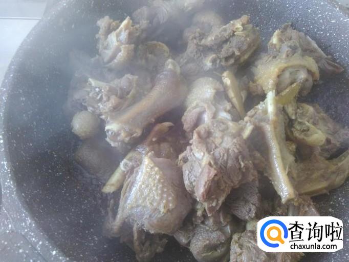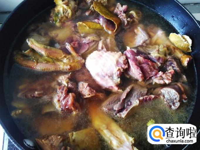 然后加水,水量要淹没过鹅肉。
