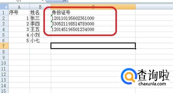 我们用excel输入身份证号,如图所示,输入后都变成了科学计数法的数字。