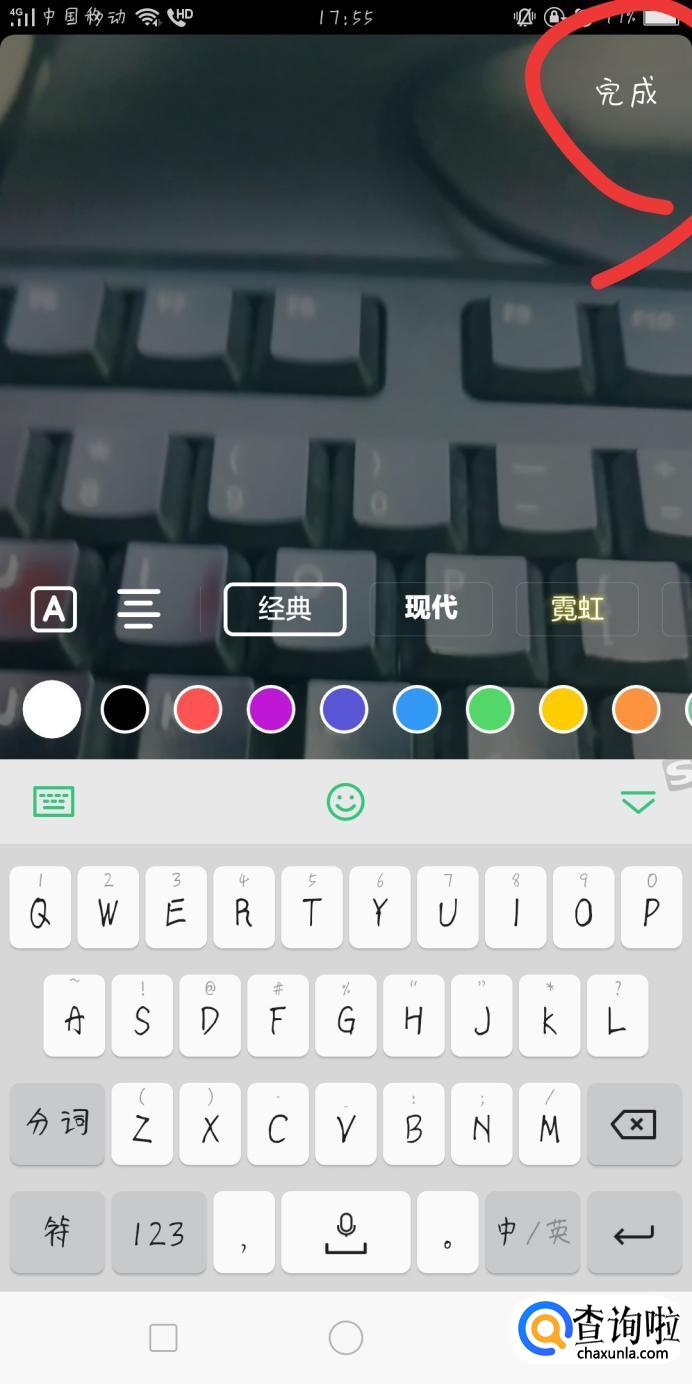 输入自己想输入的歌词、句子,输入完成之后,点击右上角的“完成”。