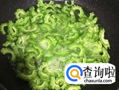 锅里装适量的水煮沸,放苦瓜进去灼1分钟左右,捞上来沥干水份备用。