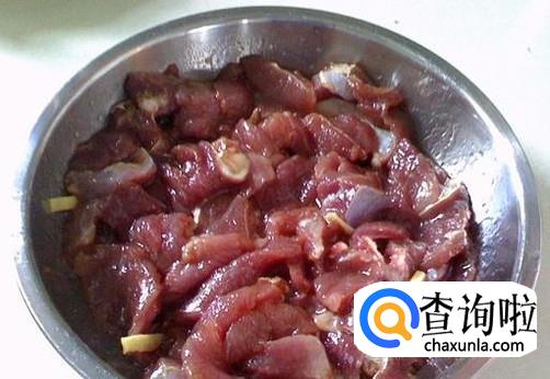 瘦肉切成薄片,加适量的盐、2勺生抽、1勺料酒、姜丝适量腌制几分钟。