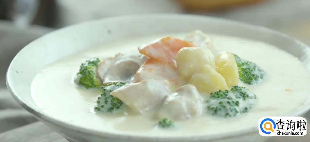 之后将奶油汁加入炖锅之中,继续搅拌至浓稠,下入西蓝花稍煮片刻,出锅之前淋上鲜奶油,重新煮开就可以出锅了。