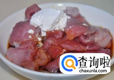 猪肉切片,加淀粉,老抽,豆瓣酱,盐,料酒,搅匀。