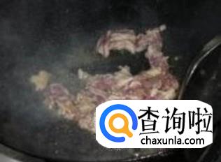 锅中加油,油8分热时加入猪肉片,爆炒,然后加入葱姜蒜末,翻炒