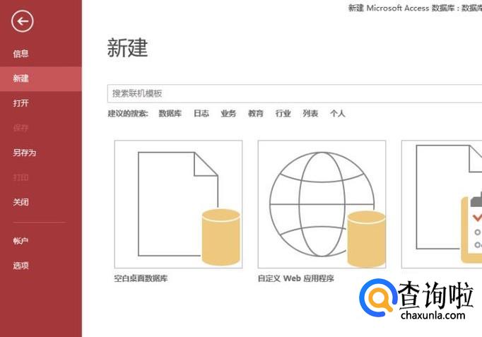 首先我们打开access软件,然后点击新建,接着选择空白数据库,如下图所示