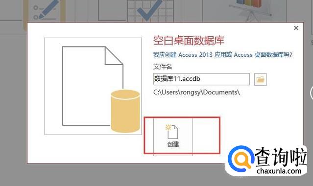 接下来会弹出数据库创建的界面,设置好名称以及存储位置后点击创建按钮,如下图所示